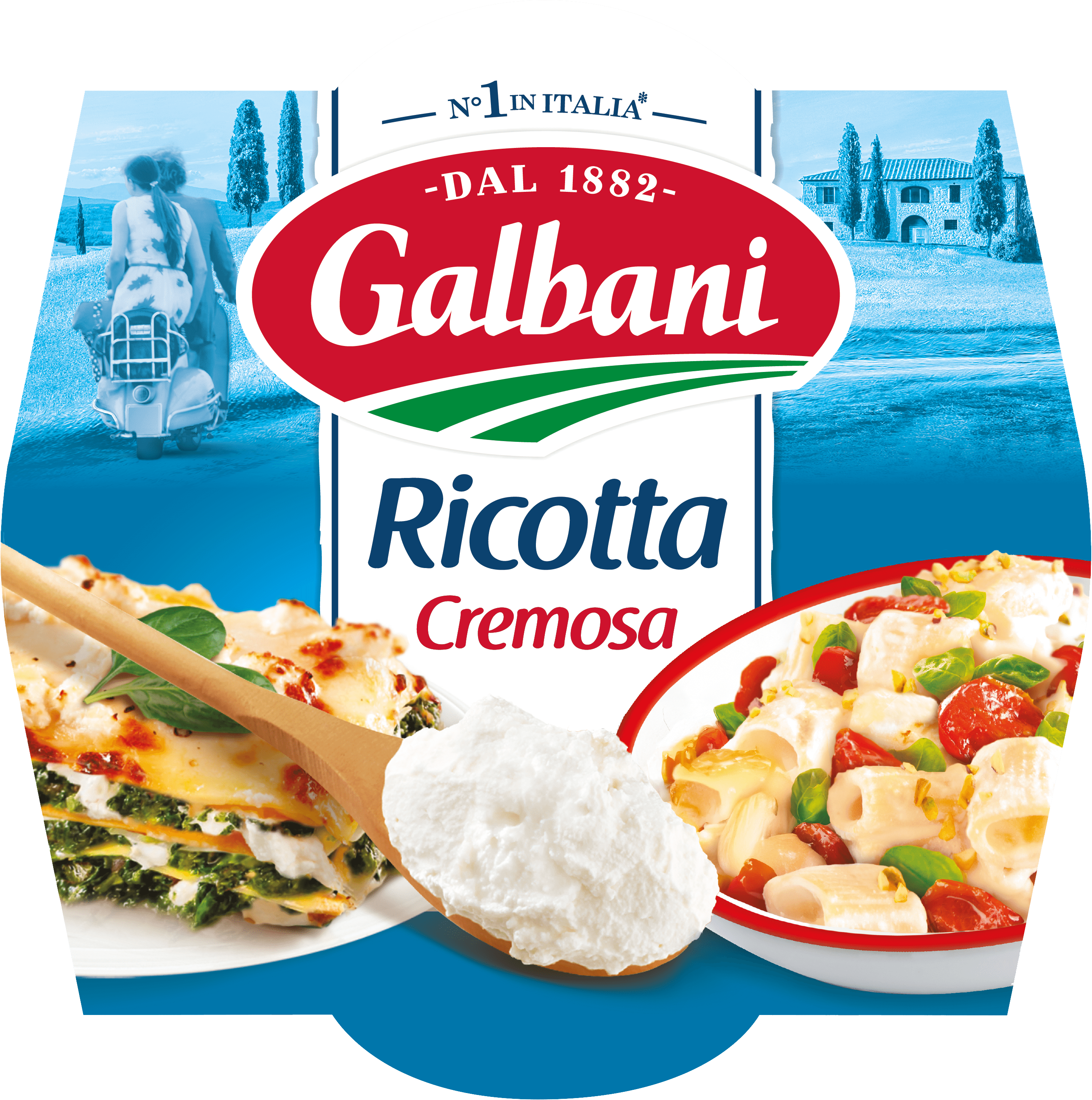 The word “ricotta” (literally: “re-cooked”) exemplifies its production method: ricotta undergoes twice the cooking process. Galbani’s Ricotta is a good source of calcium and proteins and has only 169 Kcal per 100g: that’s why it’s perfect for a modern and healthy lifestyle!