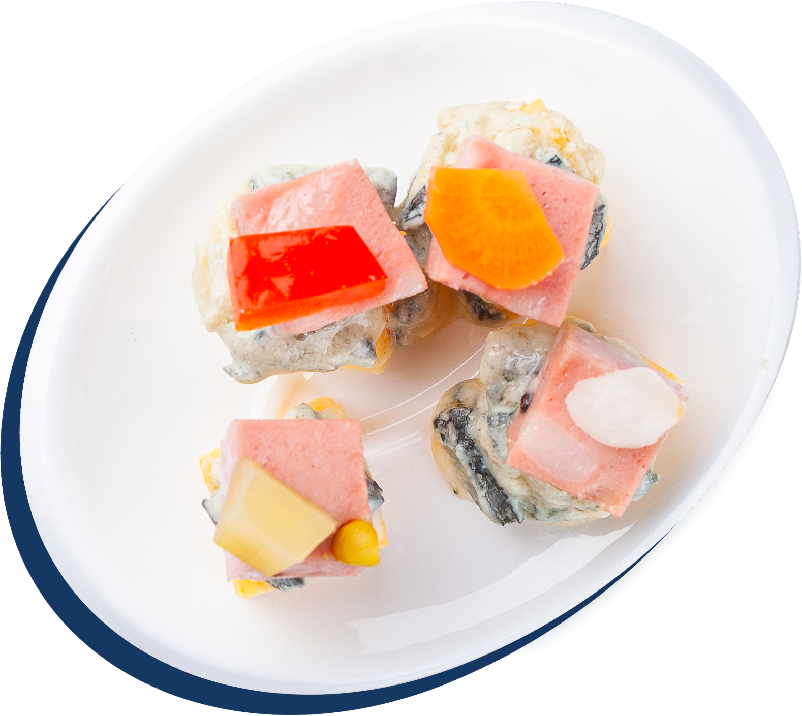 Chessboard of mortadella, polenta and gorgonzola
