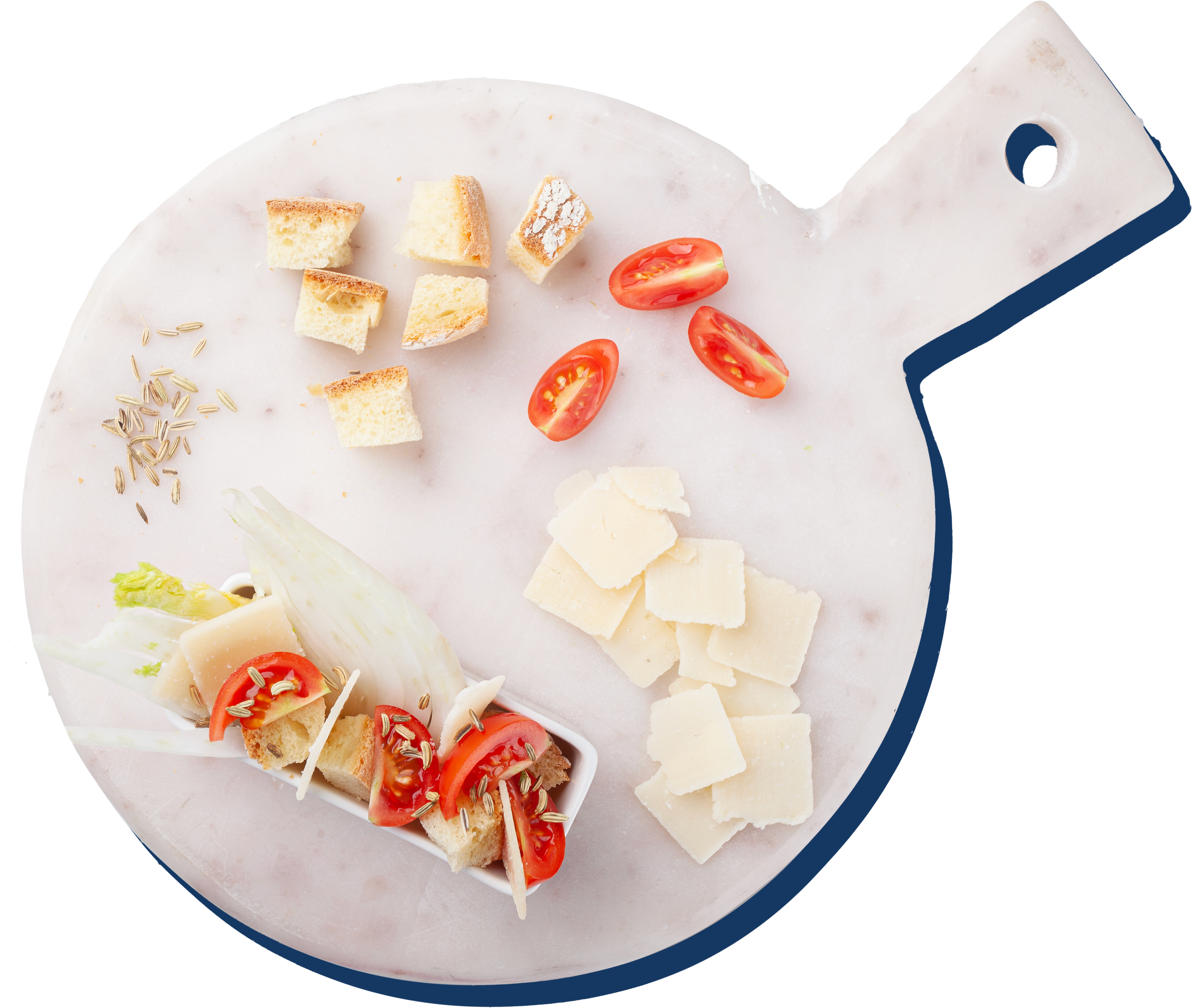 Mix all the ingredients in a small rectangular bowl and season with extra virgin olive oil, pepper and fennel seeds.
